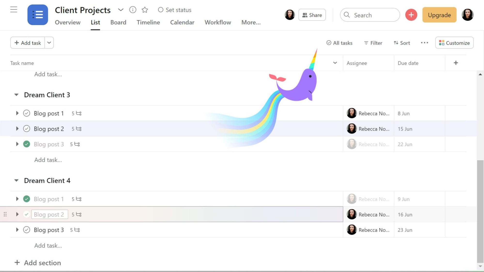 ⬇️ Mrkněte třeba na to jak to dělá Asana. Podle mě lidi s ADHD to musí milovat.